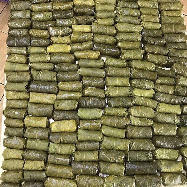 СОСТАВ: мясо говядины, лук репчатый, рис, листья винограда, вода питьевая, соль поваренная пищевая, перец горький молотый, сладкий перец молотый, зелень.